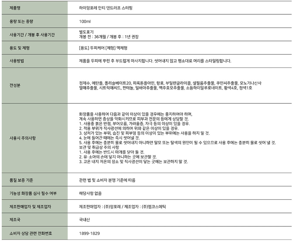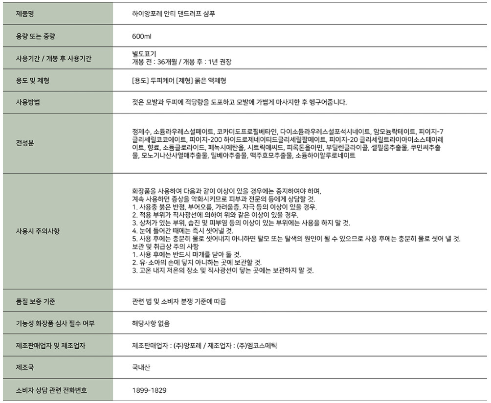 안티 댄드러프 샴푸 600ml /안티 댄드러프스터핑 트리트먼트 100ml