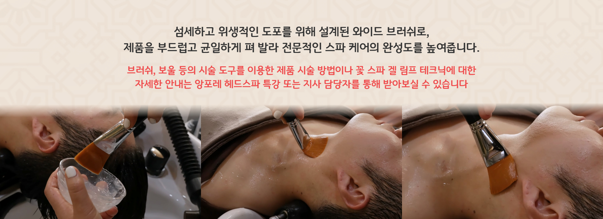 섬세하고 위생적인 도포를 위해 설계된 와이드 브러쉬로, 제품을 부드럽고 균일하게 펴 발라 전문적인 스파 케어의 완성도를 높여줍니다.