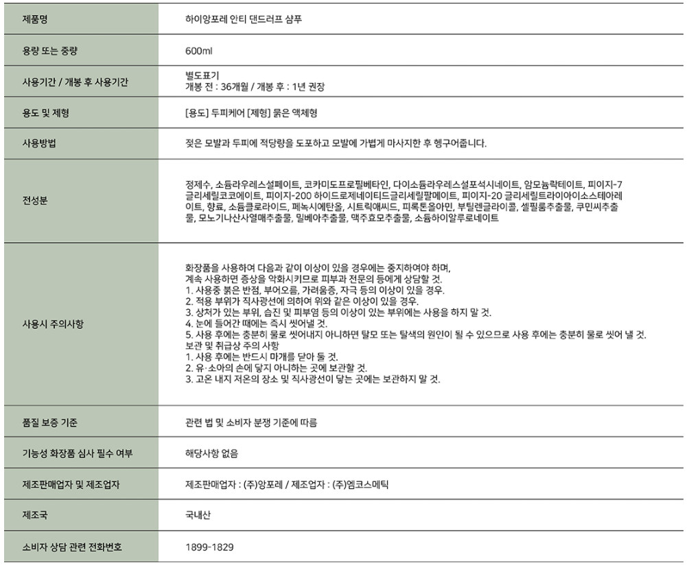 하이앙포레 안티 댄드러프 샴푸(600ml)